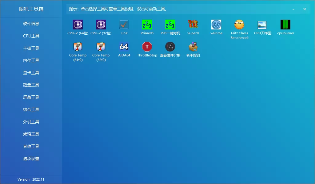 图吧工具箱是一款开源、免费、纯净、绿色的硬件检测工具合集,专为所有计算机硬件极客、DIY爱好者以及小白制作,集成大量常用硬件工具,十分方便。